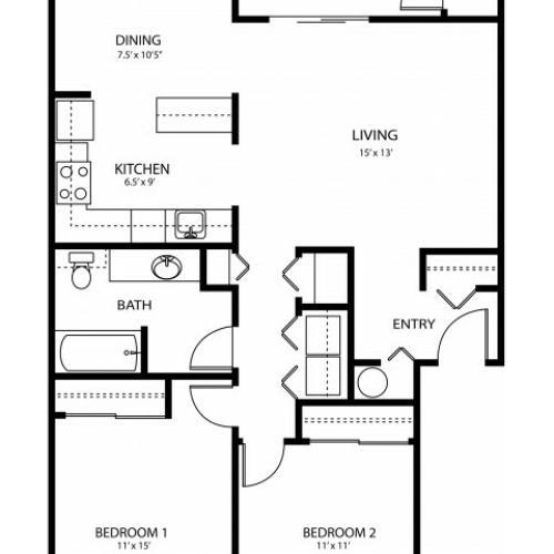 Birch 1 Bed Apartment Cottonwood Apartments