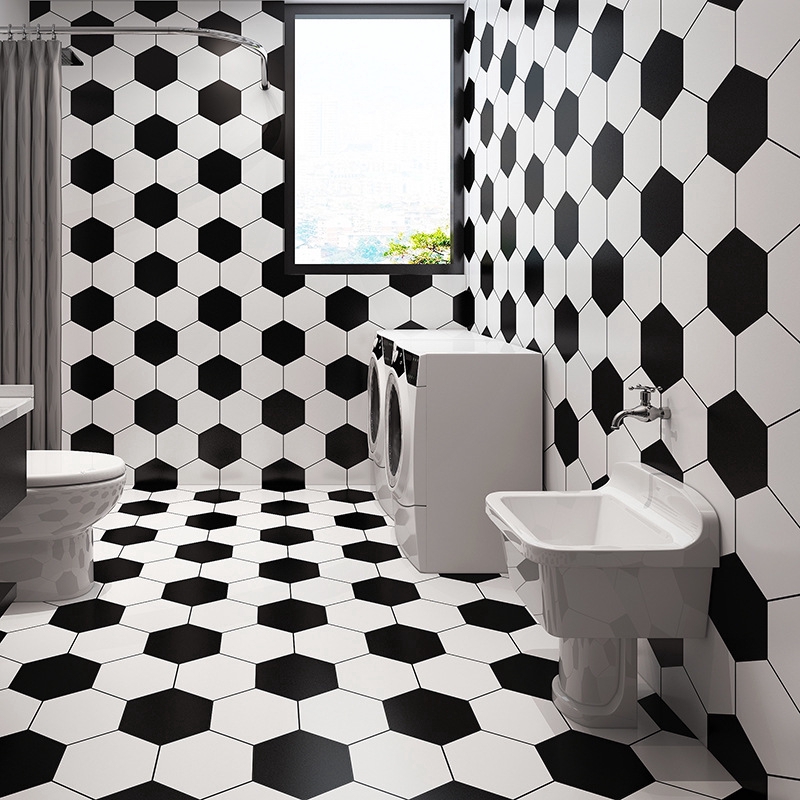 The Bathroom Tiles Stickers Black And White Mosaic Chessman