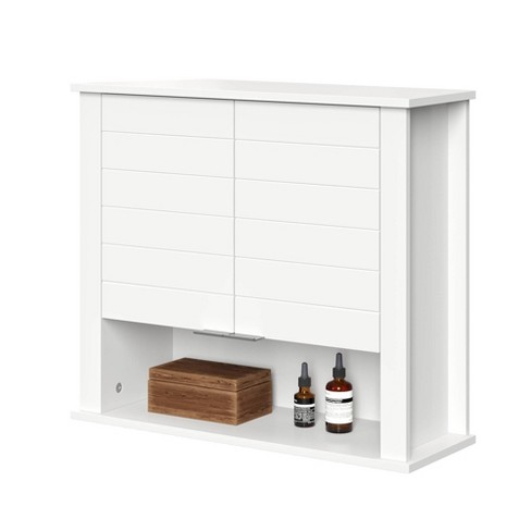 White 2 Door Bathroom Wall Cabinet With Open Storage Shelf