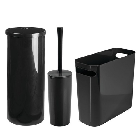 Mdesign 3 Piece Plastic Trash Can Toilet Brush Tissue Canister