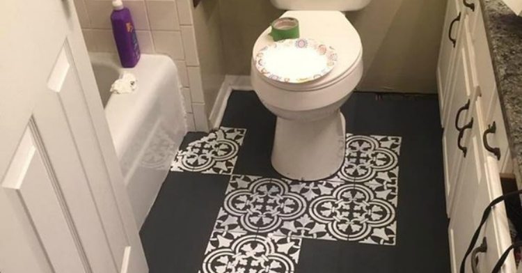 Mom Transforms Her Bathroom By Dumping Black Paint On The Floor