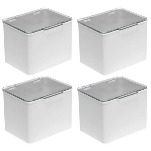 Mdesign Stackable Plastic Bathroom Organizer Box With Lid 4 Pack Gray Clear Target